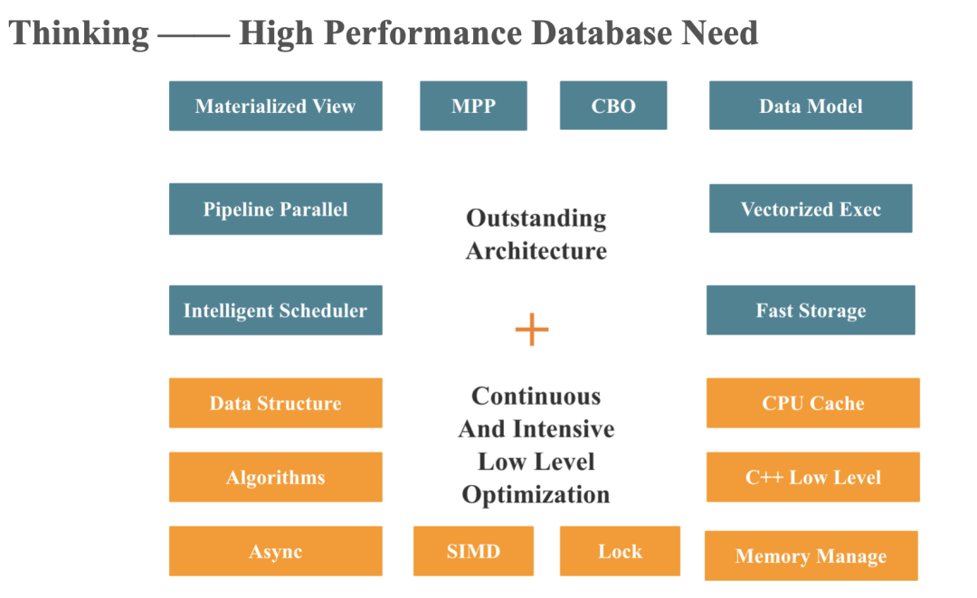 打造一个高性能的数据库,需要的不仅是优秀合理的架构,还需要极致优秀的工程细节。这一点看似十分显然,其实并不是,如果你认可这一点,当你想打造一个极致性能的数据库时,你就不会像 ClickHouse 一样 Bottom-Up 地从细节和算法层面出发去设计整个系统,也不会选择 Java 或者 Go 等语言去实现查询执行层和存储层。
